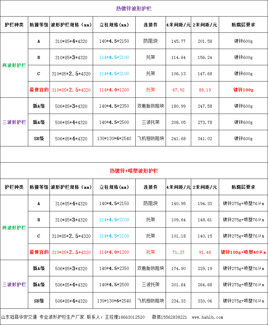 以上價格均為波形護欄材料出廠價格,不包含運費及稅票。因鋼材市場價格波動較為頻繁,僅供參考。具體價格需要結合您提供的詳細規格或圖紙進行計算。更多波形護欄資訊及實時報價請多多關注山東冠縣華安交通!保證同等質量價格最低!