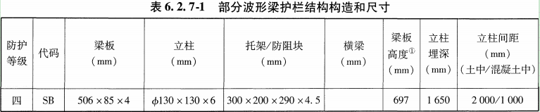四(SB)級路側(cè)波形梁護欄參數(shù)和使用該范圍如下: