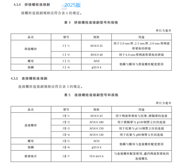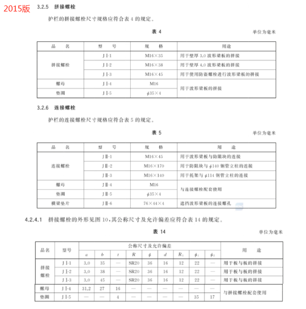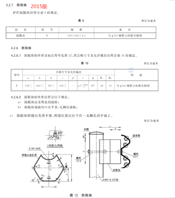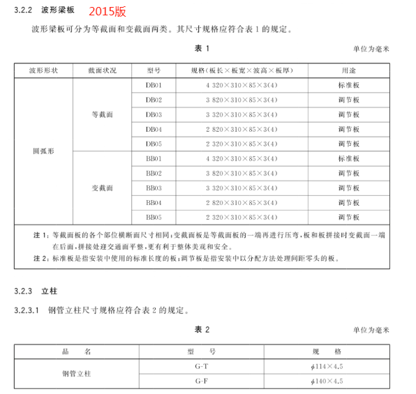 c) 更 改 了 兩 波 形 梁 板 、鋼 管 立 柱 的 用 途 、型 號 和 規 格(見 4.3.1、4.3.2,2015 年 版 的 3.2.2、3.2.3.1);