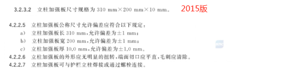 d) 刪除了鋼管立柱加強板及相關技術要求(見 2015 年版的 3.2.3.2、4.2.2.5~4.2.2.7);