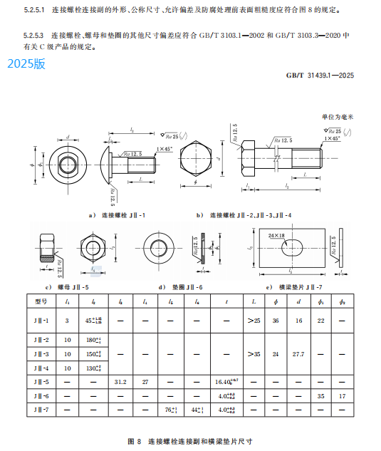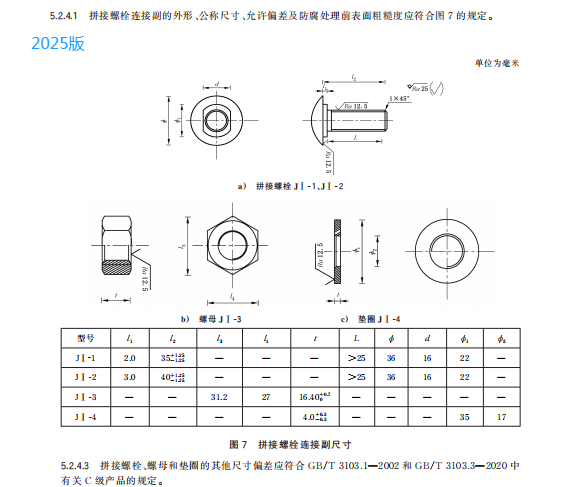 e) 更改了拼接螺栓連接副和連接螺栓連接副的用途、規格、公稱尺寸及允許偏差(見 4.3.4、4.3.5、5.2.4.1、5.2.4.3、5.2.5.1 和 5.2.5.3,2015 年版的 3.2.5、3.2.6、4.2.4.1 和 4.2.5.1);