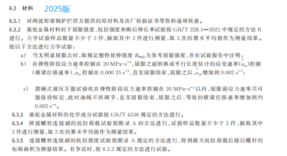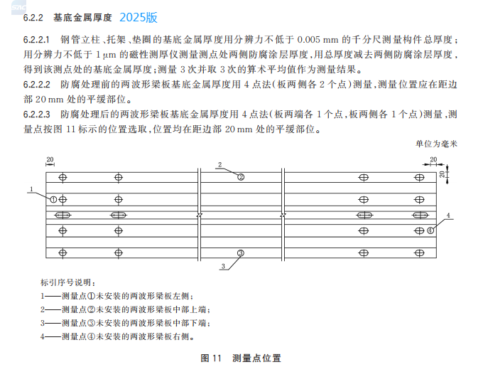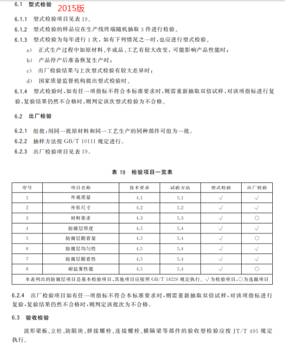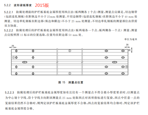 u) 更改了防腐處理后兩波形梁板基底金屬厚度試驗(yàn)方法(見(jiàn) 6.2.2,2015 年版的 5.2.2);