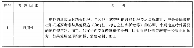 波形護欄新行業標準《JTG/T D81-2017》選取護欄形式所要考慮的因素,具體如下表: