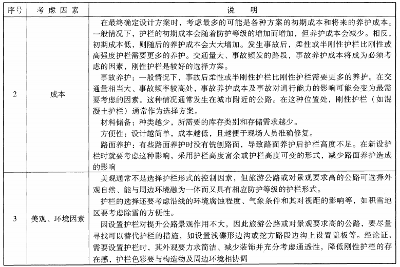 5 應考慮護欄的初期成本、投入使用后的養護成本,包括常規養護、事故養護、材料儲備和養護方便性等。宜結合路面養護方式采用經濟適宜的形式,并預先考慮將來的路面養護需求。